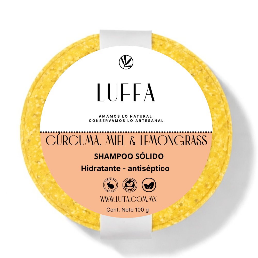 Shampoo sólido de cúrcuma, miel y lemongrass